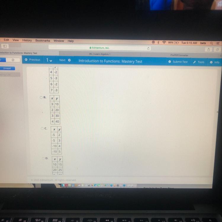 D I can only see the first two x entries so I can't be sure, so maybe you can tell. If there is any repeat int he x side and the corresponding y side isn't the same then it also isn't the function. i have to assume there is a repeat though.