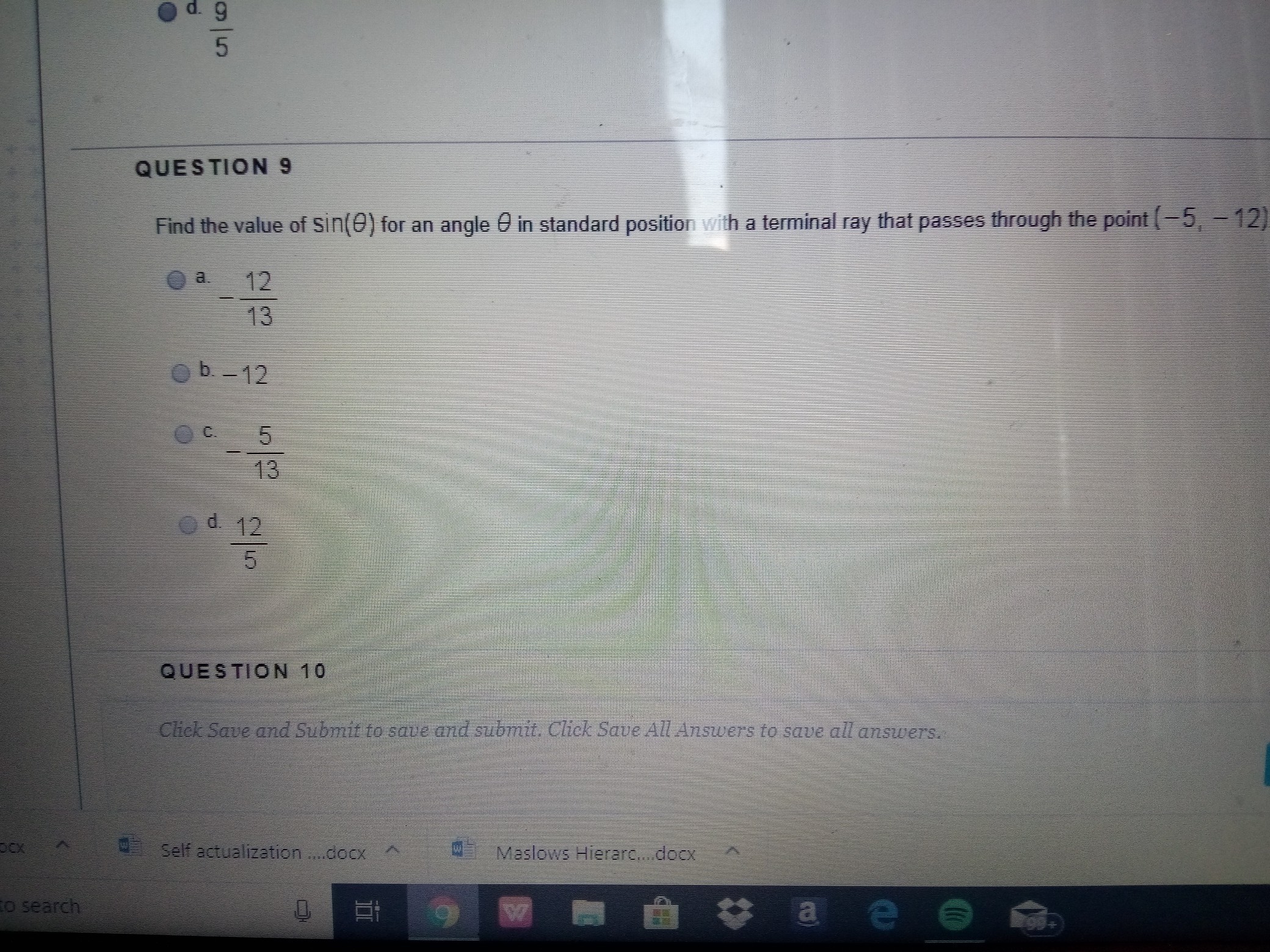 \sin\theta=\dfrac{-12}{13}=-\dfrac{12}{13}