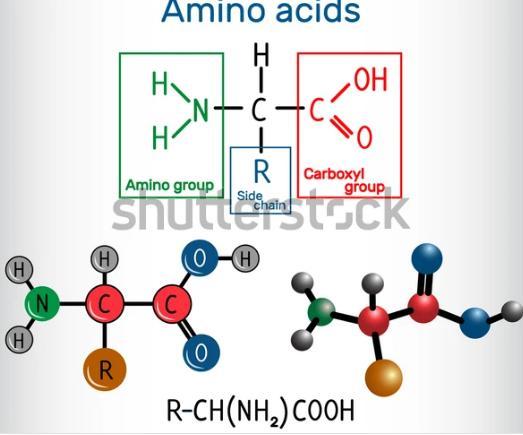 <u>Structure of amino acid</u>-It is made up of compounds containing carbon, nitrogen, oxygen, and hydrogen. In an amino acid, the positively charged amino group and the negatively charged carboxyl group are attached to the same carbon atom (alpha carbon). The 22 amino acids differ from one another because of the side chain attached to the central carbon atom. The central carbon atom is also attached to the H atom.