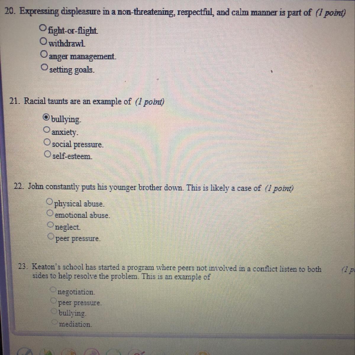20: anger management 21: bullying 22:emotional abuse 24: negotiation.