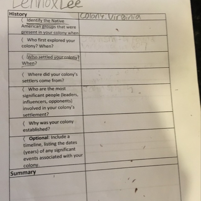 1. Identify the Native American groups that were present in Virginia.