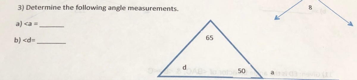 m∠d + 65 + 50 = 180