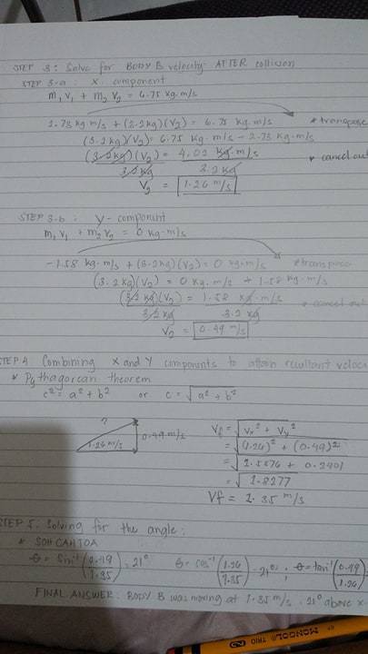 STEP 3: Solving for the X and y component of the velocity of BODY B AFTER collision.