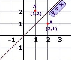 Examples:point (2,1) when reflected on y=x would become (1,2)