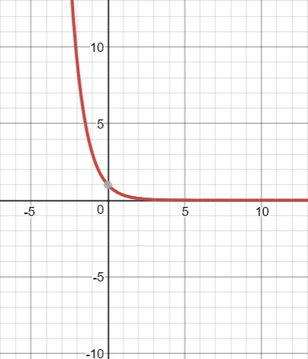 It is easy to see that x > 0 gives a line that goes very near the x axis. It is not quite so easy to see that it never touches the x axis. But if you recreate the graph in Desmos, you will see that is true if you spread the x's out.