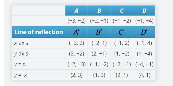 Type your response here : A B C D (-3, -2) (-2, -1) (-1, -2) (-1, -4) Line of ... (Point A has been done for you.) Then predict the numerical coordinates of the vertices of quadrilateral A ′ B ... Assume that the point translates a units to the left or right and b units up or down.