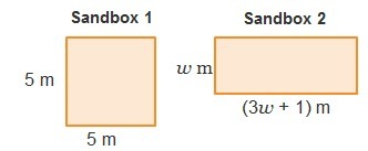 We are given that the two sandboxes have same area and the equation is given by 25 = w*(3w+1).