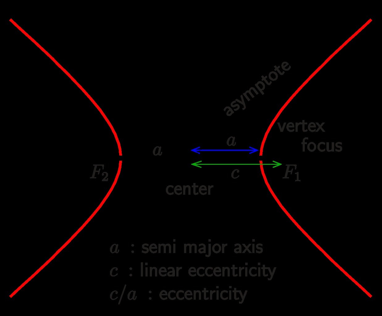 Please see the attached figure. This is how you draw a hyperbola. Its general formula is:
