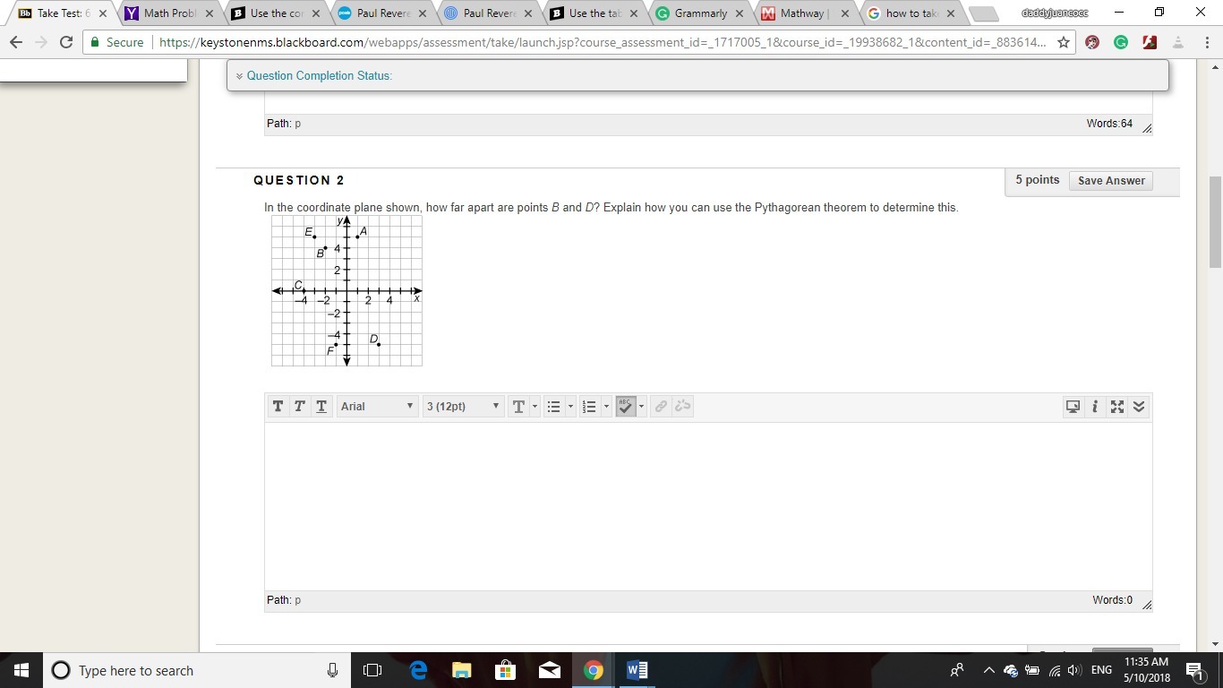PLEASE HELP AND FAST, 15 POINTS! In the coordinate plane shown, how far apart are points B and D? Explain how you can use the Py thagorean theorem to determine this.