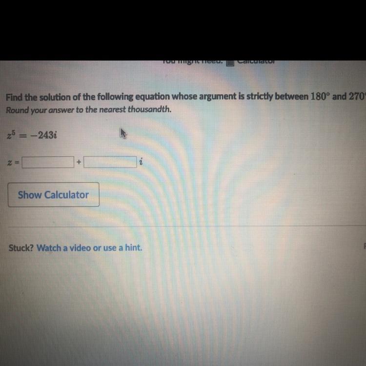 There is one solution whose argument is strictly between 180 degrees (