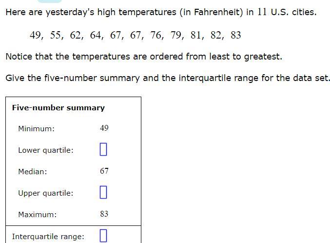 The difference is 19. Therefore, the interquartile range is 19.