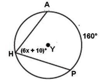 The inscribed angle AHP is exactly half that of the arc it cuts off, which is arc AP = 160.