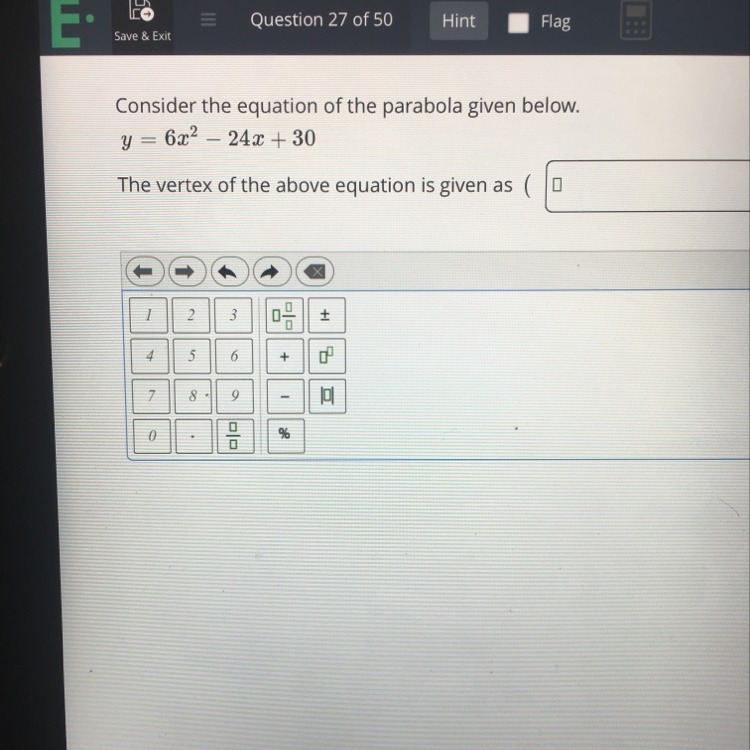 What is the vertex of y=6x^2-24x+30