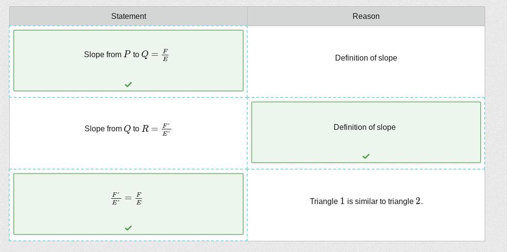When the (∆x, ∆y) values are identical, the lines are parallel. If the values are swapped, and one differs in sign, the lines are perpendicular.
