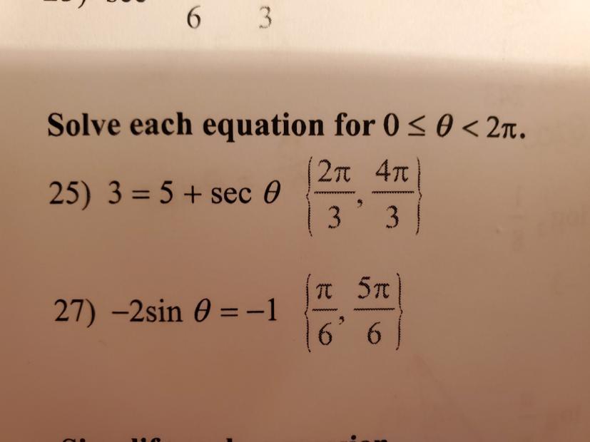 25) 3 = 5 + secΘ where we have 2 possible values of Θ (2π/3 or 4π/3)