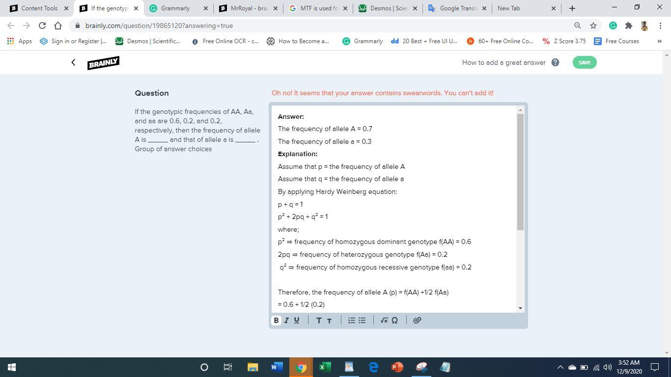 Assume that p = frequency of allele A ad q = the frequency of allele a