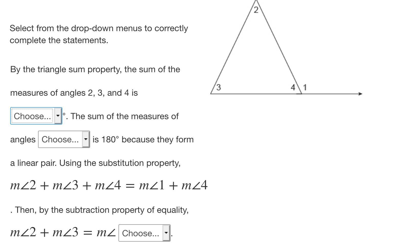 m∠2 + m∠3 + m∠4 – m∠4 = m∠1 + m∠4 – m∠4