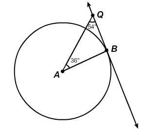 Given : From the figure : ∠BQA = 54° and ∠BAQ = 36°