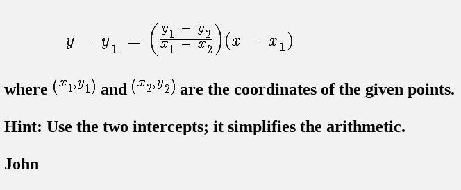 Use two of the points and the Two-Point form of an equation of a line to write the desired equation. Step-by-step explanation: