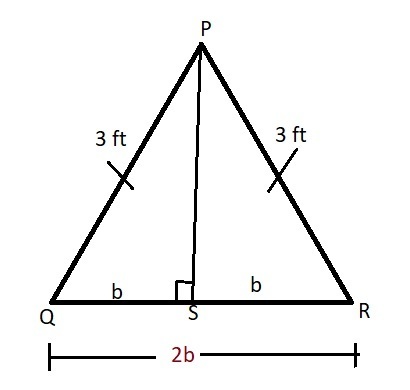 Also, this line divides the triangle into two congruent right angled triangles whose hypotenuse is 3 feet,