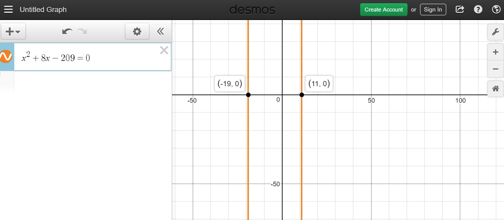 209=b*[b+8]----> 209=b²+8b-----> b²+8b-209=0