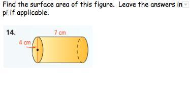 (Very easy) Find the surface area of this figure. Leave the answers in pi if applicable.