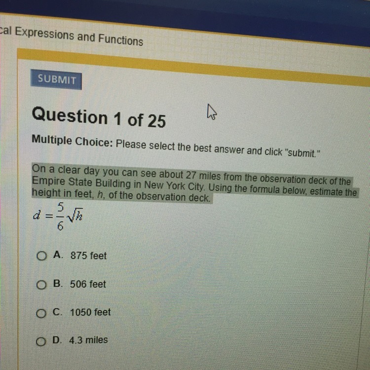 So, the height of the observation desk is 1050 feet. : Answer