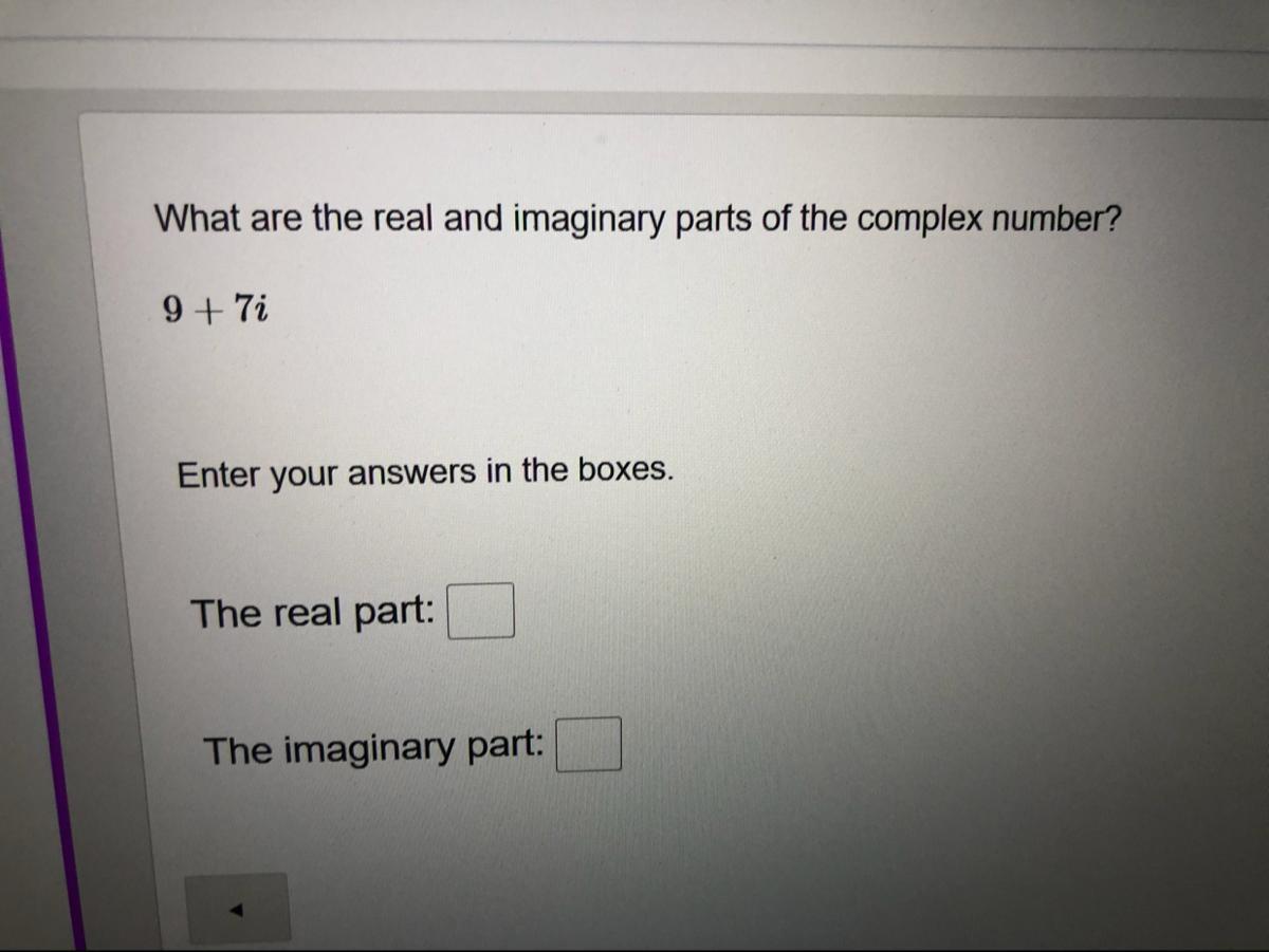 9 is the real part and 7i is the imaginary part because thee is an i.