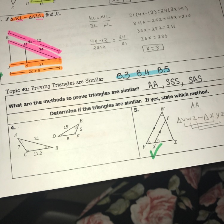 4. The triangles are similar because the corresponding sides are in the same proportion.