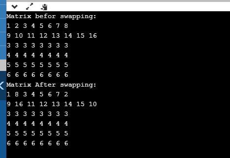 cout<<"Matrix After swapping:"<<endl;