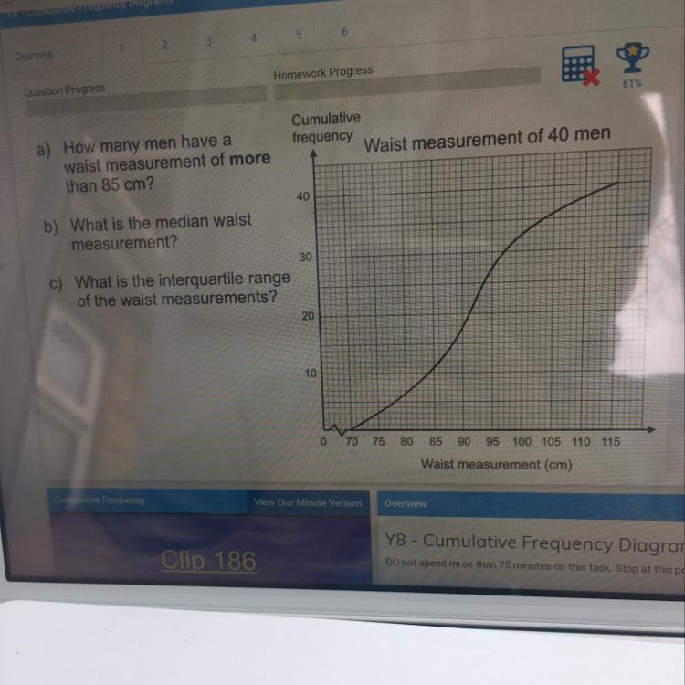 (a)From the graph, 11 men have a waist measurement of 85cm and below.