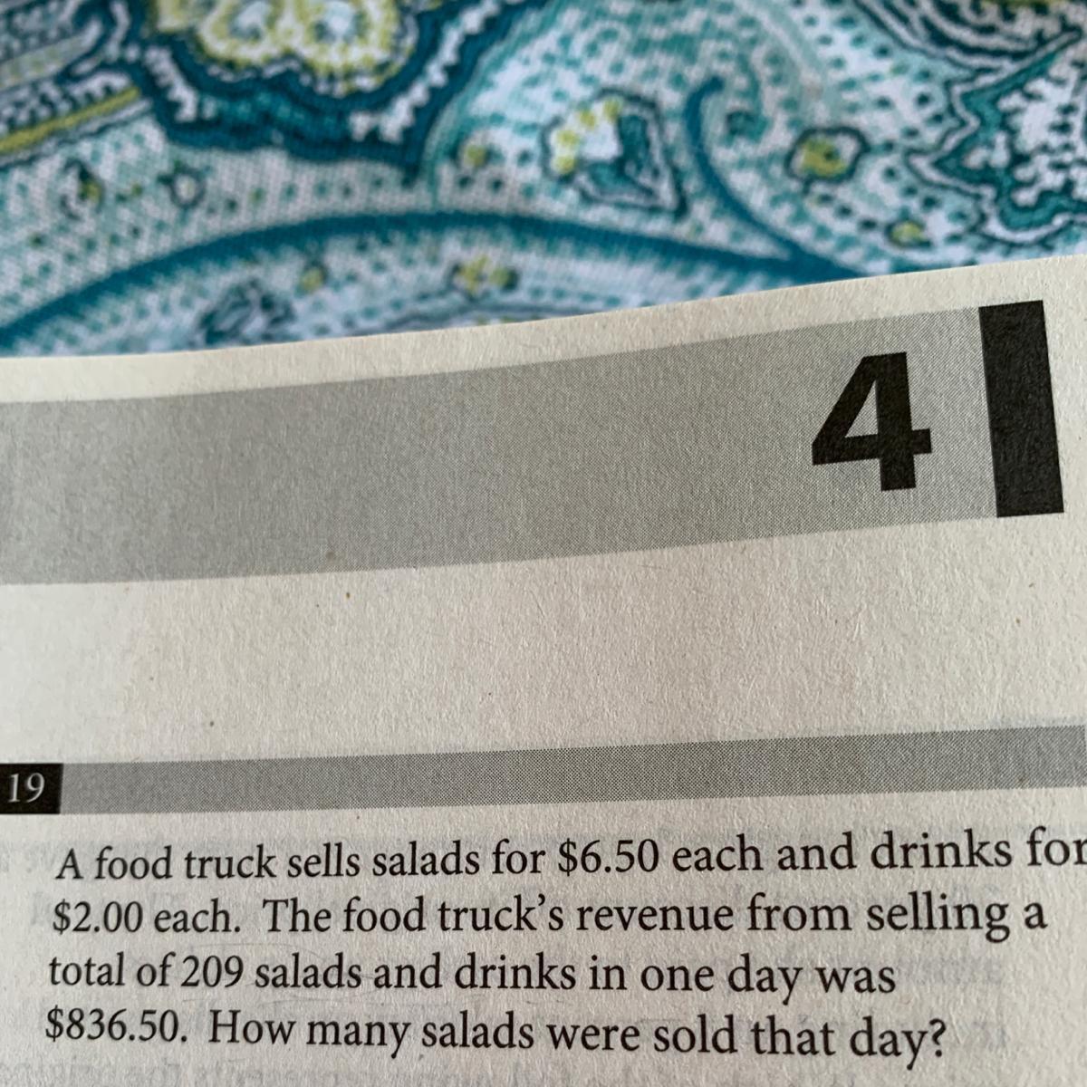 Set the system of equation. Let salad = s, and drinks = d