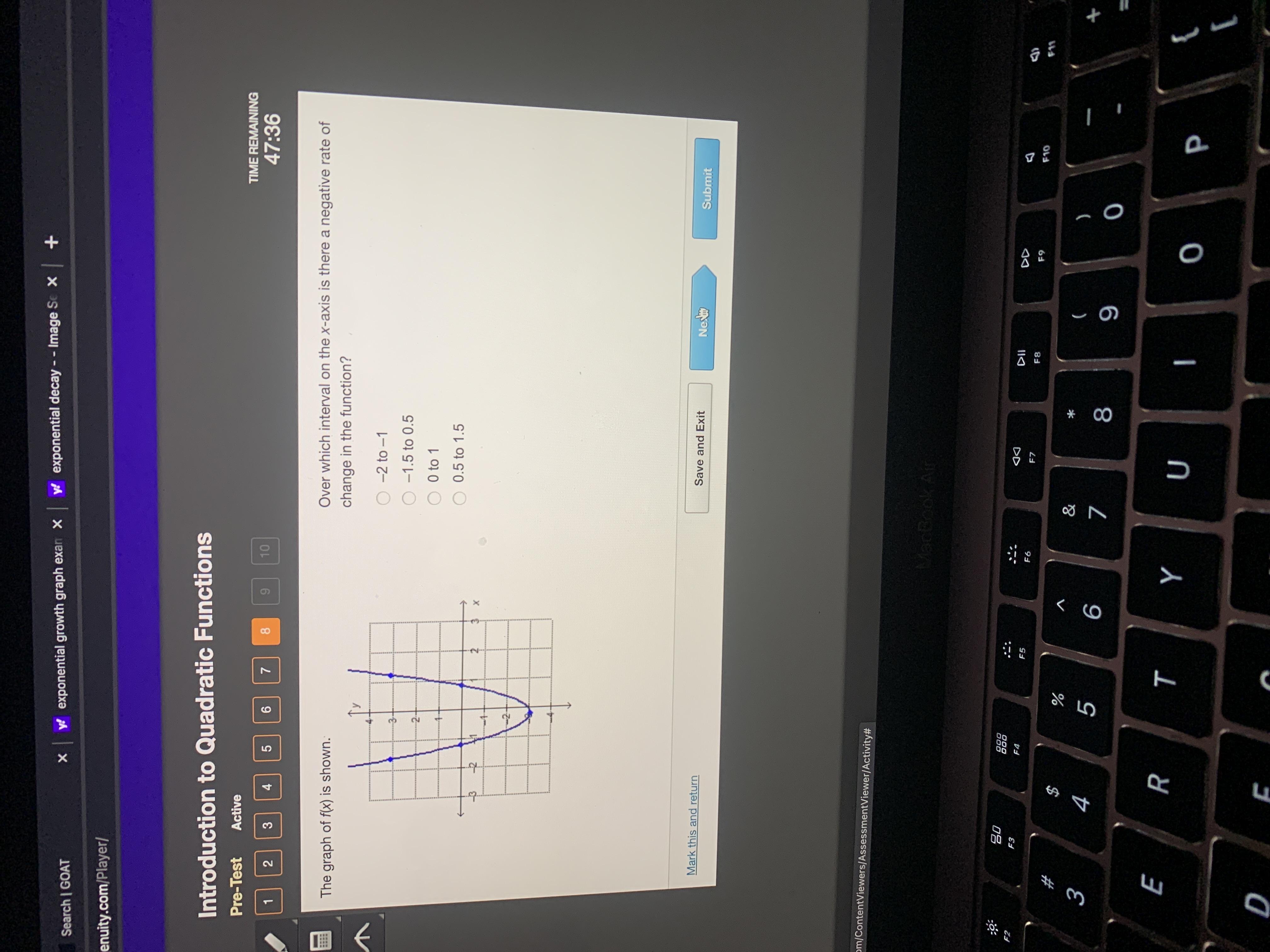 Over which interval on the x-axis is there a negative rate of change in the function?