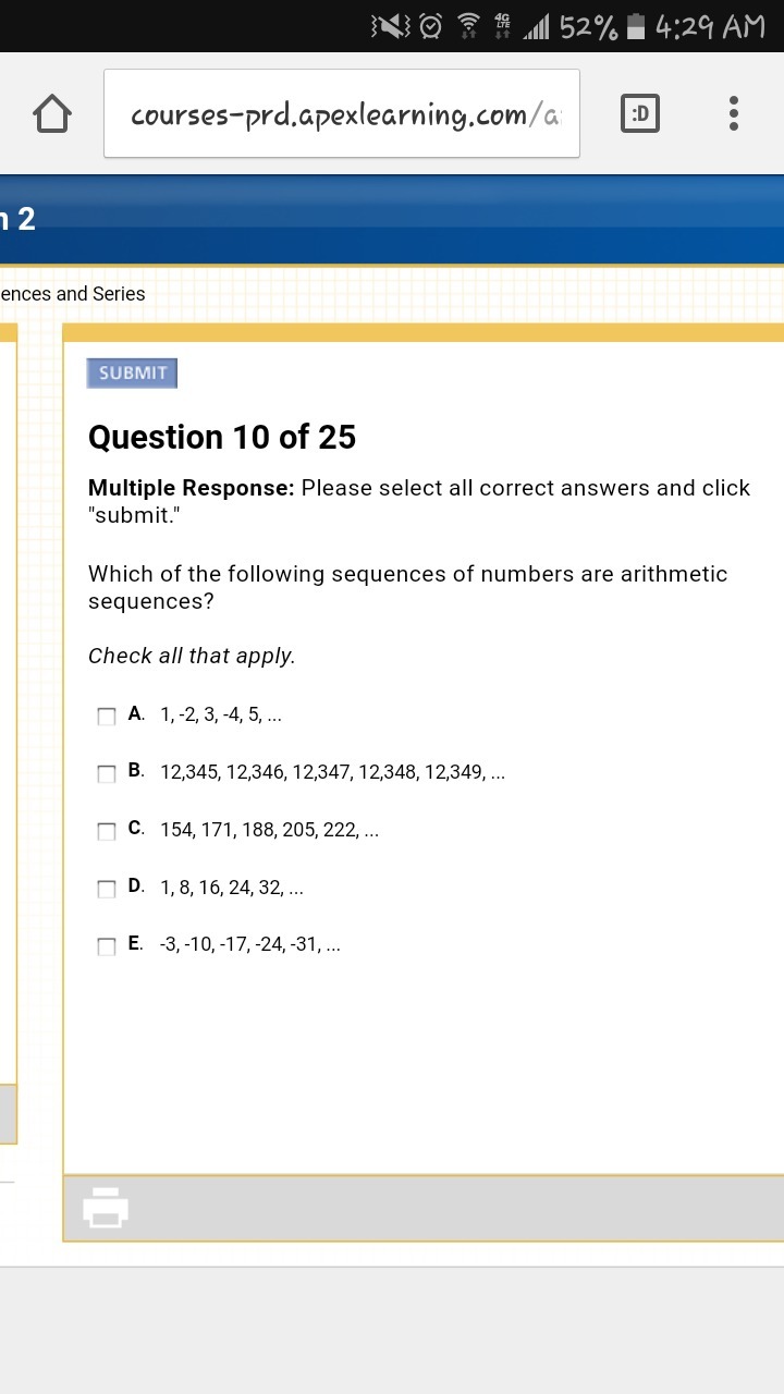 Which of the following sequences of numbers are arithmetic sequences?Check all that apply.