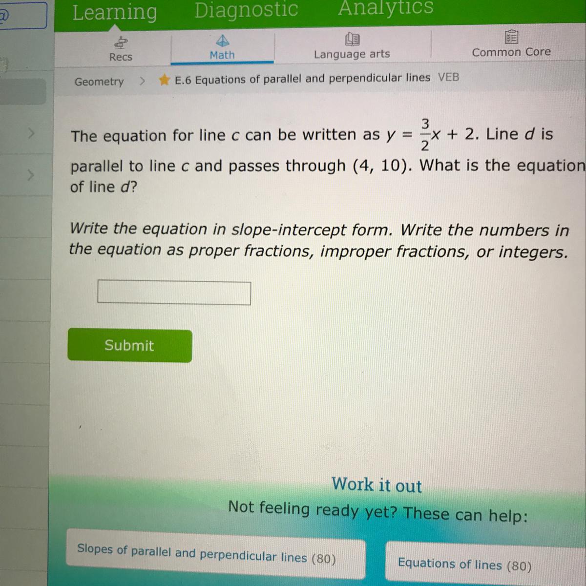 y = m(x -h) +k . . . . line with slope m through point (h, k)