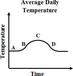 In the attached graph the lows or "valleys" are the coldest parts of the year. A and D are likely Fall and Winter. While B grows and temperatures get higher then B is likely Spring. This means C is summer since it has the highest temperatures.