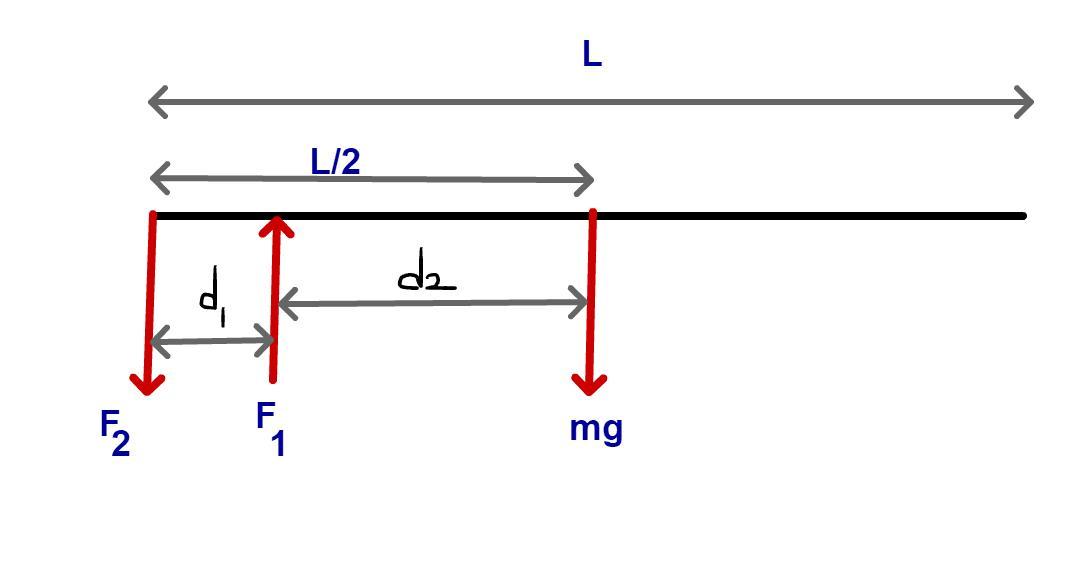Now, as the pole is held horizontally straight, the moment about the point of application of force 'F₁' is zero for equilibrium of the pole.