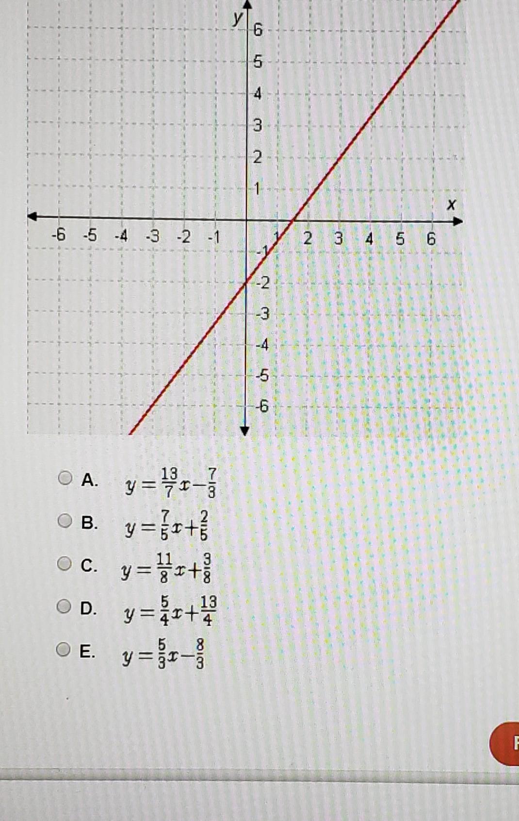 Next step is to identify, among the proposed solutions, the one that have a steepest slope than 4/3 (1.33). In the equations, the slope is the coefficient of the x element.