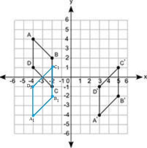 Therefore, the figure ABCD reflected across the x-axis and then translated 7 units right to get A'B'C'D'.