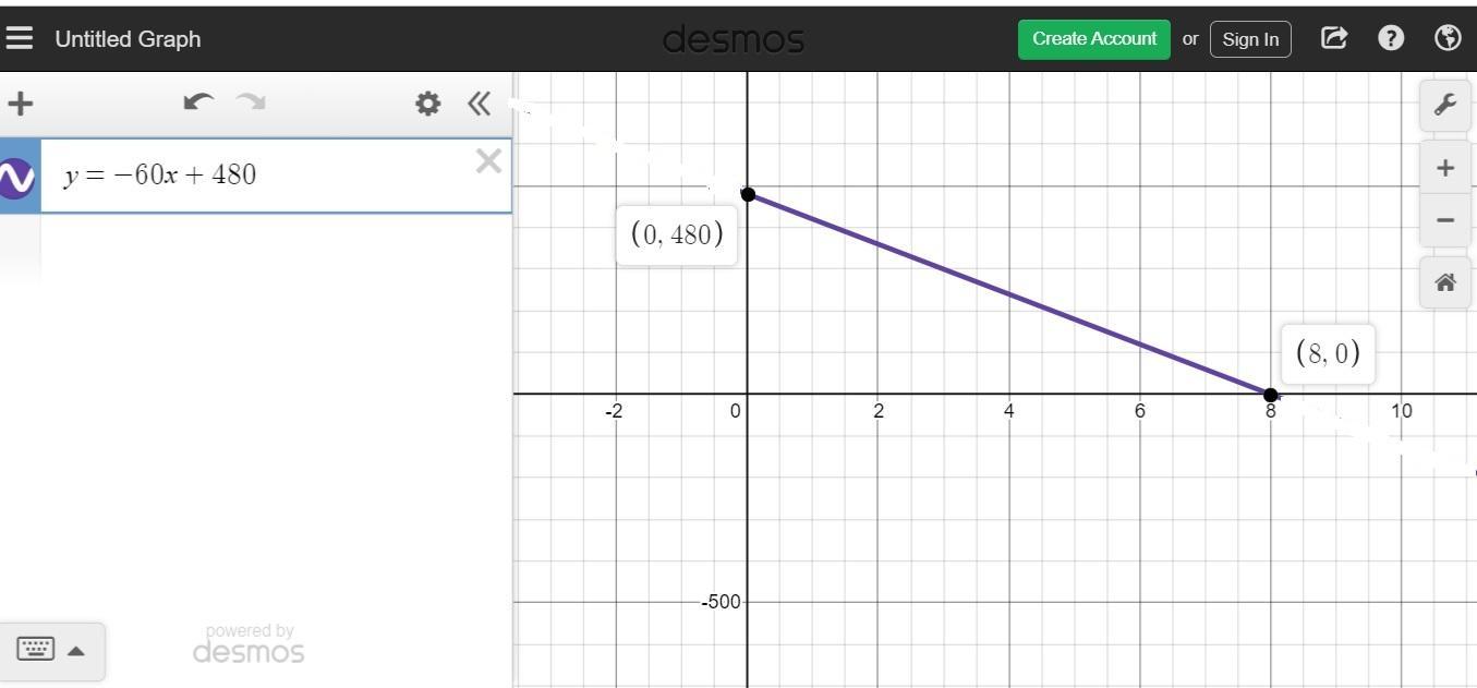 That means----> The time required to empty the fish pond is 8 hours (for y=0 liters)
