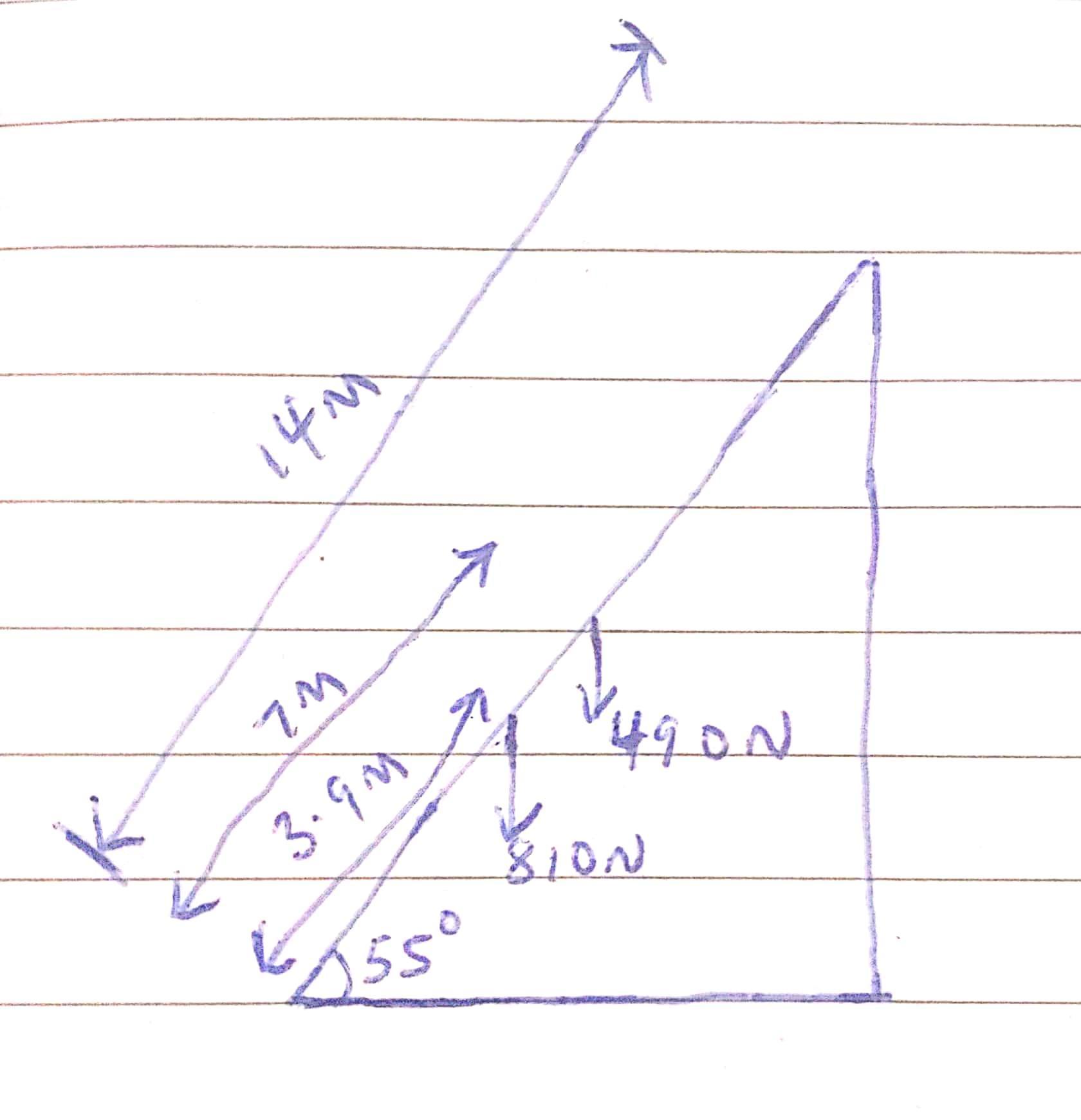 (810Cos55)•3.9 + (490Cos55)•7 = (NwSin55)•14