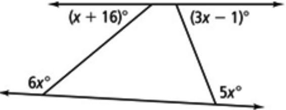 Form the given figure it is clear that (x+16)^{\circ},(3x-1)^{\circ},6x^{\circ},5x^{\circ}