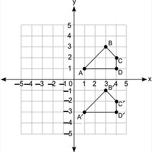 The vertices of A'B'C'D' are A'(1,-3), B'(3,-1), C'(4,-2) and D'(4,-3).