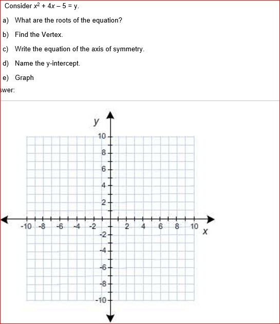 d) The <em>y-intercept</em> is your C-term, so in this case, it is [0, -5].