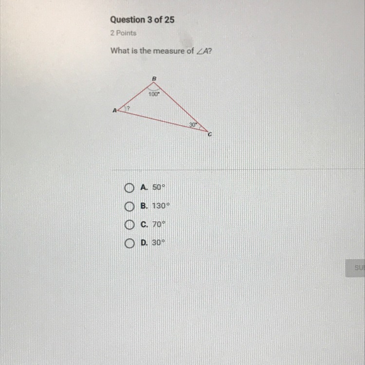 First, we can determine ∠C. Since the interior angles sum to 180 in a triangle, this means that: