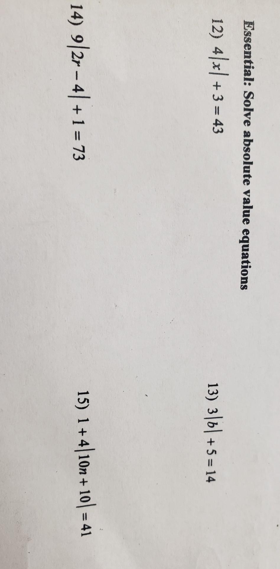 14) 9|2r - 4| + 1 = 73