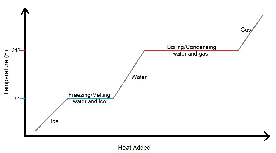 Room temperature water, 25° C, is in liquid state. With an increased temperature, the water molecules within the container begin to break their hydrogen bonds, and releasing heat in an exothermic reaction. As water reaches 100° C sea level, its liquid state becomes vapor and is emitted as steam. It can be explained as well by as its boiling point illustrated here.