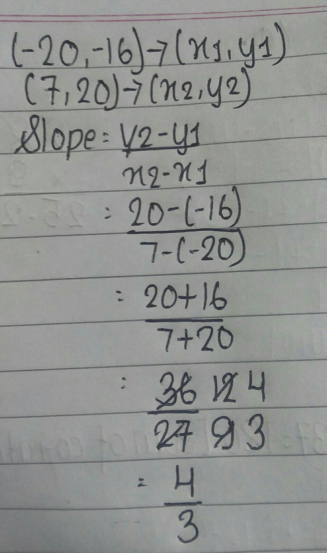 Two points are (-20, -16) and (7,20)