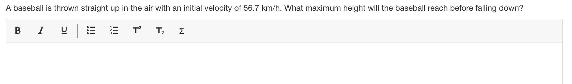 Initial velocity (m/s) = 56.7 x 1000/3600