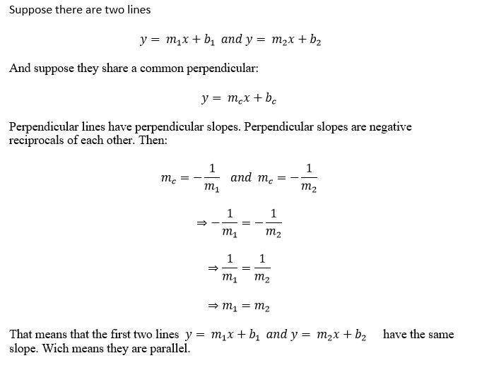 In Euclidean (standard) geometry, prove: If two lines share a common perpendicular, then the lines are parallel. (You do not nee